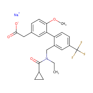 FC(F)(c1ccc(c(c1)CN(CC)C(=O)C1CC1)c1cc(ccc1OC)CC(=O)[O-<br />])F.[Na+]