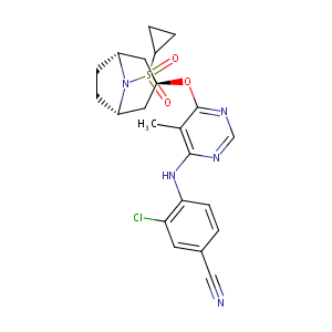 O=S(=O)(C1CC1)N1[C@H]2CC[C@@H]1C[C@@H](Oc1c(c(Nc3c(cc(c<br />c3)C#N)Cl)ncn1)C)C2
