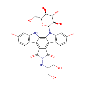 OCC(CO)NN1C(=O)c2c(C1=O)c3c4ccc(O)cc4n([C@@H]5O[C@H](CO<br />)[C@@H](O)[C@H](O)[C@H]5O)c3c6[nH]c7cc(O)ccc7c26