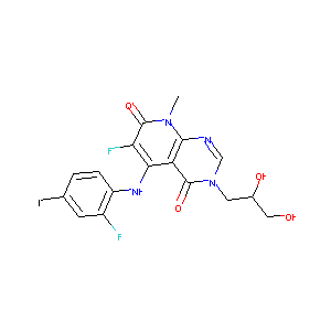 CN1C2=C(C(=C(C1=O)F)NC3=C(C=C(C=C3)I)F)C(=O)N(C=N2)CC(C<br />O)O