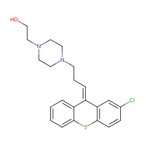 Acuphase; CLOPENTHIXOL; Cisordinol; Clopenthixolum; Clopentixol; Clopixol; Zuclopenthixolum; Zuclopentixol; Alpha Clopenthixol; Zuclopenthixolum [Latin]; Zuclopentixol [Spanish]; Acuphase (TN); Alpha-Clopenthixol; Cisordinol (TN); Clopenthixol (USAN); Clopixol (TN); Zuclopenthixol (INN); Zuclopenthixol [BAN:INN]; (Z)-4-(3-(2-Chlorothioxanthen-9-ylidene)propyl)-1-piperazineethanol; 2-[4-[(3Z)-3-(2-chlorothioxanthen-9-ylidene)propyl]piperazin-1-yl]ethanol; 2-{4-[(3Z)-3-(2-chloro-10H-dibenzo[b,e]thiopyran-10-ylidene)propyl]piperazin-1-yl}ethanol; 2-{4-[3-(2-chloro-10H-dibenzo[b,e]thiopyran-10-ylidene)propyl]piperazin-1-yl}ethanol; 4-(3-(2-Chlorothioxanthen-9-ylidene)propyl)-1-piperazineethanol