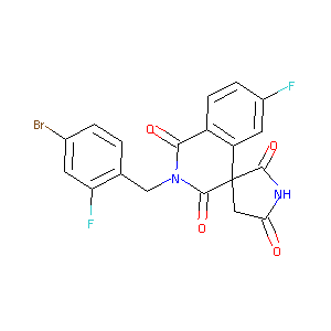 C1C(=O)NC(=O)C12C3=C(C=CC(=C3)F)C(=O)N(C2=O)CC4=C(C=C(C<br />=C4)Br)F