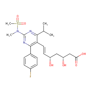 Astende; Cirantan; Cresadex; Creston; Crestor; Provisacor; Razel; Rosedex; Rosimol; Rosumed; Rosustatin; Rosuvas; Rosuvast; Rosvel; Rovartal; Simestat; Sinlip; Vivacor; Rosuvastatin [INN]; Rosuvastatin calcium; Rosuvastatin calcium [USAN]; Rosuvastatin hemicalcium; S 4522; ZD 4522; ZD4522; AZD-4522; Creston (TN);Crestor (TN); Pyrimidine Compound, 26; Rosuvastatin (INN); S-4522; ZD 4522, calcium salt; ZD-4522; Rosuvastatin calcium (JAN/USAN); Bis[(E)-7-[4-(4-fluorophenyl)-6-isopropyl-2-[methyl(methylsulfonyl)amino] pyrimidin-5-yl](3R,5S)-3,5-dihydroxyhelpt-6-enoic acid] calcium salt; Calcium (E,3R,5S)-7-[4-(4-fluorophenyl)-2-[methyl(methylsulfonyl)amino]-6-propan-2-ylpyrimidin-5-yl]-3,5-dihydroxyhept-6-enoate; (3R,5S,6E)-7-(4-(4-fluorophenyl)-6-(1-methylethyl)-2-(ethyl(methylsulfonyl)amino)-5-pyrimidinyl)-3,5-dihydroxy-6-heptenoic acid; (3R,5S,6E)-7-{4-(4-fluorophenyl)-2-[methyl(methylsulfonyl)amino]-6-(propan-2-yl)pyrimidin-5-yl}-3,5-dihydroxyhept-6-enoic acid; (3R,5S,6E)-7-{4-(4-fluorophenyl)-6-isopropyl-2-[methyl(methylsulfonyl)amino]pyrimidin-5-yl}-3,5-dihydroxyhept-6-enoic acid; (E,3R,5R)-7-[4-(4-fluorophenyl)-2-[methyl(methylsulfonyl)amino]-6-propan-2-ylpyrimidin-5-yl]-3,5-dihydroxyhept-6-enoic acid; (E,3R,5S)-7-[4-(4-fluorophenyl)-2-[methyl(methylsulfonyl)amino]-6-propan-2-ylpyrimidin-5-yl]-3,5-dihydroxyhept-6-enoic acid; (S-((R*,S*-(E)))-7-(4-(4-fluorophenyl)-6-(1-methylethyl)-2-(methyl(methylsulfonyl) amino)-5-pyrimidinyl)-3,5-dihydroxy-6-heptenoic acid, calcium salt (2:1); (S-(R*,S*-(E)))-7-(4-(4-Fluorophenyl)-6-(1-methylethyl)-2-(methyl(methylsulfonyl)amino)-5-pyrimidinyl)-3,5-dihydroxy-6-heptenoic acid, calcium salt (2:1); 6-Heptenoic acid, 7-(4-(4-fluorophenyl)-6-(1-methylethyl)-2-(ethyl(methylsulfonyl)amino)-5-pyrimidinyl)-3,5-dihydroxy-, (3R,5S,6E); 6-Heptenoic acid, 7-(4-(4-fluorophenyl)-6-(1-methylethyl)-2-(methyl(methylsulfonyl)amino)-5-pyrimidinyl)-3,5-dihydroxy-, calcium salt (2:1), (3R,5S,6E)