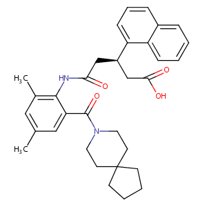 InChI=1S/C33H38N2O4/c1-22-18-23(2)31(28(19-22)32(39)35-16-14-33(15-17-35)12-5-6-13-33)34-29(36)20-25(21-30(37)38)27-11-7-9-24-8-3-4-10-26(24)27/h3-4,7-11,18-19,25H,5-6,12-17,20-21H2,1-2H3,(H,34,36)(H,37,38)/t25-/m1/s1