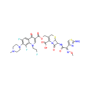 CN1CCN(CC1)C2=C(C=C3C(=C2F)N(C=C(C3=O)C(=O)OCC4=C(N5C(C<br />(C5=O)NC(=O)C(=NOC)C6=CSC(=N6)N)SC4)C(=O)O)CCF)F