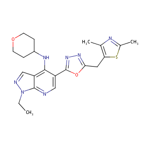 CCN1C2=NC=C(C(=C2C=N1)NC3CCOCC3)C4=NN=C(O4)CC5=C(N=C(S5<br />)C)C