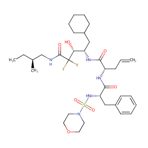 InChI=1S/C34H53F2N5O7S/c1-4-12-27(38-32(44)29(22-26-15-10-7-11-16-26)40-49(46,47)41-17-19-48-20-18-41)31(43)39-28(21-25-13-8-6-9-14-25)30(42)34(35,36)33(45)37-23-24(3)5-2/h4,7,10-11,15-16,24-25,27-30,40,42H,1,5-6,8-9,12-14,17-23H2,2-3H3,(H,37,45)(H,38,44)(H,39,43)/t24-,27-,28-,29-,30+/m0/s1