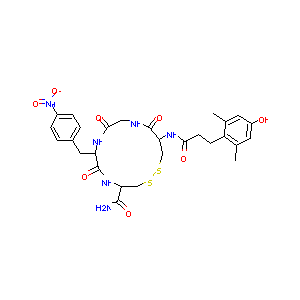 CC1=CC(=CC(=C1CCC(=O)NC2CSSCC(NC(=O)C(NC(=O)CNC2=O)CC3=<br />CC=C(C=C3)[N+](=O)[O-])C(=O)N)C)O