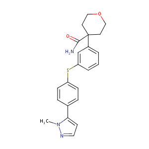 C1CC(CCO1)(C(=O)N)c1cc(ccc1)Sc1ccc(cc1)c1n(ncc1)C