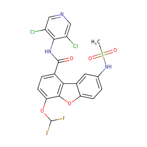 c1(ccc2c(c1)c1c(o2)c(ccc1C(=O)Nc1c(cncc1Cl)Cl)OC(F)F)NS<br />(=O)(=O)C