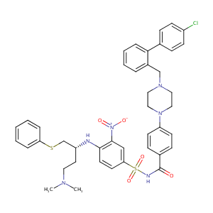 InChI=1S/C42H45ClN6O5S2/c1-46(2)23-22-35(30-55-37-9-4-3-5-10-37)44-40-21-20-38(28-41(40)49(51)52)56(53,54)45-42(50)32-14-18-36(19-15-32)48-26-24-47(25-27-48)29-33-8-6-7-11-39(33)31-12-16-34(43)17-13-31/h3-21,28,35,44H,22-27,29-30H2,1-2H3,(H,45,50)/t35-/m1/s1