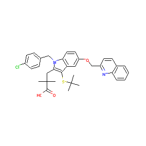 CC(C)(C)SC1=C(N(C2=C1C=C(C=C2)OCC3=NC4=CC=CC=C4C=C3)CC5<br />=CC=C(C=C5)Cl)CC(C)(C)C(=O)O