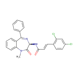 InChI=1S/C25H19Cl2N3O2/c1-30-21-10-6-5-9-19(21)23(17-7-3-2-4-8-17)29-24(25(30)32)28-22(31)14-12-16-11-13-18(26)15-20(16)27/h2-15,24H,1H3,(H,28,31)/b14-12+/t24-/m1/s1