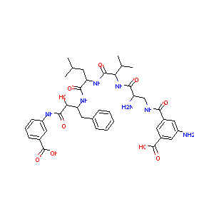 CC(C)CC(C(=O)NC(CC1=CC=CC=C1)C(C(=O)NC2=CC=CC(=C2)C(=O)<br />O)O)NC(=O)C(C(C)C)NC(=O)C(CNC(=O)C3=CC(=CC(=C3)N)C(=O)O<br />)N