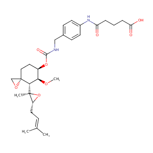 InChI=1S/C29H40N2O8/c1-18(2)8-13-22-28(3,39-22)26-25(36-4)21(14-15-29(26)17-37-29)38-27(35)30-16-19-9-11-20(12-10-19)31-23(32)6-5-7-24(33)34/h8-12,21-22,25-26H,5-7,13-17H2,1-4H3,(H,30,35)(H,31,32)(H,33,34)/t21-,22-,25-,26-,28+,29+/m1/s1