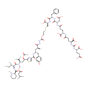 c1(nc(sc1)[C@@H](C[C@@H](N(C(=O)[C@@H](NC(=O)[C@@H]1N(C<br />)CCCC1)[C@H](CC)C)COC(=O)CC(C)C)C(C)C)OC(=O)C)C(=O)N[C@<br />H](C[C@@H](C(=O)NNC(=O)OCCSSC[C@H](NC(=O)[C@@H](NC(=O)[<br />C@@H](NC(=O)CC[C@H](NC(=O)CC[C@H](NC(=O)N[C@H](C(=O)O)C<br />CC(=O)O)C(=O)O)C(=O)O)CC(=O)O)Cc1ccccc1)C(=O)O)C)Cc1ccc<br />(cc1)O