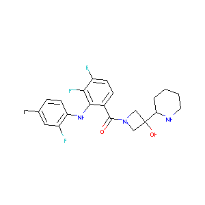 C1CCNC(C1)C2(CN(C2)C(=O)C3=C(C(=C(C=C3)F)F)NC4=C(C=C(C=<br />C4)I)F)O