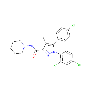 CC1=C(N(N=C1C(=O)NN2CCCCC2)C3=C(C=C(C=C3)Cl)Cl)C4=CC=C(<br />C=C4)Cl