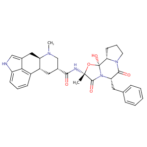 [C@@]12(N(C(=O)[C@@](O1)(NC(=O)[C@@H]1C[C@H]3[C@H](N(C1<br />)C)Cc1c4c3cccc4[nH]c1)C)[C@H](C(=O)N1[C@H]2CCC1)Cc1cccc<br />c1)O
