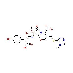 Festamoxin; LMOX; Lamoxactam; Latamoxefum; Moxalactam; Disodium Moxalactam; Lilly 127935; Ly127935; Sid 734787; Latamoxef (INN); Latamoxef [INN:BAN]; Latamoxefum [INN-Latin]; Oxa-cephem; S-6059; (6R,7R)-7-[[3-hydroxy-2-(4-hydroxyphenyl)-3-oxopropanoyl]amino]-7-methoxy-3-[(1-methyltetrazol-5-yl)sulfanylmethyl]-8-oxo-5-oxa-1-azabicyclo[4.2.0]oct-2-ene-2-carboxylic acid; (6R,7R)-7-{[carboxy(4-hydroxyphenyl)acetyl]amino}-7-(methyloxy)-3-{[(1-methyl-1H-tetrazol-5-yl)thio]methyl}-8-oxo-5-oxa-1-azabicyclo[4.2.0]oct-2-ene-2-carboxylic acid; (6R,7R)-7-{[carboxy(4-hydroxyphenyl)acetyl]amino}-7-methoxy-3-{[(1-methyl-1H-tetrazol-5-yl)sulfanyl]methyl}-8-oxo-5-oxa-1-azabicyclo[4.2.0]oct-2-ene-2-carboxylic acid; (6R-(6alpha,7alpha,7(S*)))-7-((Carboxy(4-hydroxyphenyl)acetyl)amino)-7-methoxy-3-(((1-methyl-1H-tetrazol-5-yl)thio)methyl)-8-oxo-5-oxa-1-azabicyclo(4.2.0)oct-2-ene-2-carboxylic acid; 1-Oxacephalosporin; 7b-[2-carboxy-2-(4-hydroxyphenyl)acetamido]-7a-methoxy-3-[[(1-methyl-1h-tetrazol-5-yl)thio]methyl]-1-oxa-1-dethia-3-cephem-4-carboxylic acid; 7beta-(2-Carboxy-2-(4-hydroxyphenyl)acetamido)-7alpha-methoxy-3-(((1-methyl-1H-tetrazol-5-yl)thio)methyl)-1-oxa-1-dethia-3-cephem-4-carboxylic acid