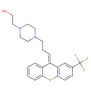 Depixol; Emergil; Fluanxol; Flupentixol; Fluxanxol; Siplaril; Siplarol; LC 44; N 7009; ALPHA-FLUPENTHIXOL; Cis(Z)Flupenthixol; Cis-Flupenthixol; Cis-Flupentixol; Depixol (TN); Fluanxol (TN); Flupentixol (INN); Flupentixol [INN:DCF]; Flupentixolum [INN-Latin]; Cis-(Z)-Flupenthixol; (Z)-4-(3-(2-(Trifluoromethyl)-9H-thioxanthen-9-ylidene)propyl)-1-piperazineethanol; (Z)-4-(3-(2-(Trifluoromethyl)-9H-thioxanthen-9-ylidene)propyl)piperazine-1-ethanol; 1-Piperazineethanol, 4-(3-(2-(trifluoromethyl)-9H-thioxanthen-9-ylidene)propyl)-(9CI); 2-Trifluoromethyl-9-(3-(4-(2-hydroxyethyl)piperazin-1-yl)propylidene)thioxanthene; 2-Trifluoromethyl-9-(3-(4-(beta-hydroxyethyl)-1-piperazinyl)propylidene)thioxanthene; 2-[4-[(3Z)-3-[2-(Trifluoromethyl)thioxanthen-9-ylidene]propyl]piperazin-1-yl]ethanol; 4-(3-(2-(Trifluoromethyl)-9H-thioxanthen-9-ylidene)propyl)-1-piperazineethanol; 4-(3-(2-(Trifluoromethyl)thioxanthen-9-ylidene)propyl)-1-piperazineethanol