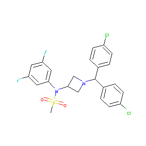 CS(=O)(=O)N(C1CN(C1)C(C2=CC=C(C=C2)Cl)C3=CC=C(C=C3)Cl)C<br />4=CC(=CC(=C4)F)F