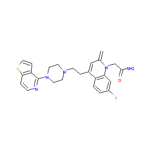 C=C1C=C(C2=C(N1CC(=O)N)C=C(C=C2)F)CCN3CCN(CC3)C4=NC=CC5<br />=C4C=CS5