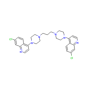 Piperaquinoline; Quinoline, 4,4'-(1,3-propanediyldi-4,1-piperazinediyl)bis(7-chloro-); Quinoline, 4,4'-(1,3-propanediyldi-4,1-piperazinediyl)bis(7-chloro-(9CI); 1,3-bis(1-(7-chloro-4'-quinolyl)-4'-piperazinyl)propane; 1,3-bis(4-(7'-chloro-4'-quinoline)-1-piperazine); 4,4'-(propane-1,3-diyldipiperazine-4,1-diyl)bis(7-chloroquinoline); 7-chloro-4-[4-[3-[4-(7-chloroquinolin-4-yl)piperazin-1-yl]propyl]piperazin-1-yl]quinoline