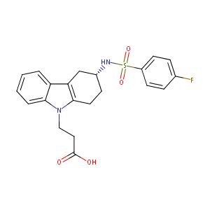 InChI=1S/C21H21FN2O4S/c22-14-5-8-16(9-6-14)29(27,28)23-15-7-10-20-18(13-15)17-3-1-2-4-19(17)24(20)12-11-21(25)26/h1-6,8-9,15,23H,7,10-13H2,(H,25,26)/t15-/m1/s1