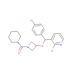 C1CCN(CC1)C(=O)N2CC(C2)OC(C3=CC=C(C=C3)Cl)C4=C(N=CC=C4)<br />Cl