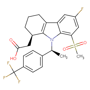 c1(cc(c2c(c1)c1c(n2[C@H](c2ccc(cc2)C(F)(F)F)C)[C@H](CCC<br />1)CC(=O)O)S(=O)(=O)C)F
