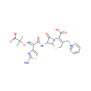 CC(C)(C(=O)O)ON=C(C1=CSC(=N1)N)C(=O)NC2C3N(C2=O)C(=C(CS<br />3)C[N+]4=CC=CC=C4)C(=O)[O-]