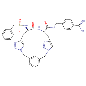 InChI=1S/C33H35N11O4S/c34-31(35)26-11-9-22(10-12-26)16-36-32(45)29-14-27-19-43(41-38-27)17-24-7-4-8-25(13-24)18-44-20-28(39-42-44)15-30(33(46)37-29)40-49(47,48)21-23-5-2-1-3-6-23/h1-13,19-20,29-30,40H,14-18,21H2,(H3,34,35)(H,36,45)(H,37,46)/t29-,30+/m0/s1