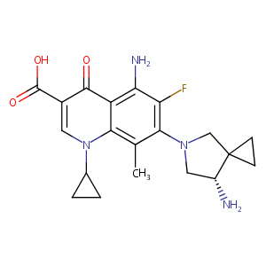 CC1=C(C(=C(C2=C1N(C=C(C2=O)C(=O)O)C3CC3)N)F)N4CC(C5(C4)<br />CC5)N