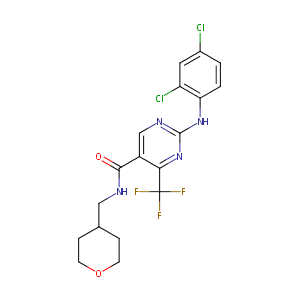 C1COCCC1CNC(=O)C2=CN=C(N=C2C(F)(F)F)NC3=C(C=C(C=C3)Cl)C<br />l