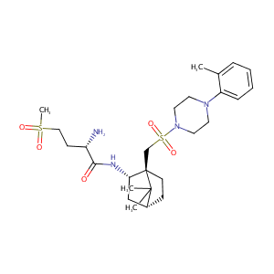 InChI=1S/C26H42N4O5S2/c1-19-7-5-6-8-22(19)29-12-14-30(15-13-29)37(34,35)18-26-11-9-20(25(26,2)3)17-23(26)28-24(31)21(27)10-16-36(4,32)33/h5-8,20-21,23H,9-18,27H2,1-4H3,(H,28,31)/t20-,21+,23+,26-/m1/s1