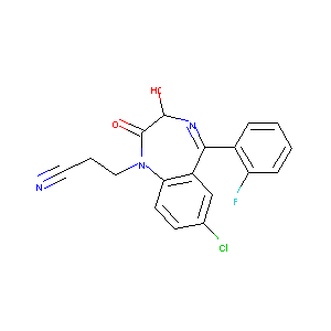 Cinolazepamum; Gerodorm; Cinolazepam [INN]; OX 373; Cinolazepam (INN); Cinolazepamum [INN-Latin]; Gerodorm (TN); OX-373;1-(2-cyanoethyl)-7-chloro-3-hydroxy-5-(2'-fluorophenyl)-1,3-dihydro-2H-1,4-benzodiazepin-2-one; 3-[7-chloro-5-(2-fluorophenyl)-3-hydroxy-2-oxo-2,3-dihydro-1H-1,4-benzodiazepin-1-yl]propanenitrile; 3-[7-chloro-5-(2-fluorophenyl)-3-hydroxy-2-oxo-3H-1,4-benzodiazepin-1-yl]propanenitrile; 7-Chloro-5-(o-fluorophenyl)-2,3-dihydro-3-hydroxy-2-oxo-1H-1,4-benzodiazepine-1-propionitrile; 7-chloro-5-(2-fluorophenyl)-2,3-dihydro-3-hydroxy-2-oxo-1H-1,4-benzodiazepine-1-propanenitrile