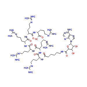 1S/C52H94N30O12/c53-37-33-38(74-24-73-37)82(25-75-33)45-35(85)34(84)36(94-45)44(91)66-17-3-1-2-16-32(83)76-26(10-4-18-67-47(54)55)39(86)77-27(11-5-19-68-48(56)57)40(87)78-28(12-6-20-69-49(58)59)41(88)79-29(13-7-21-70-50(60)61)42(89)80-30(14-8-22-71-51(62)63)43(90)81-31(46(92)93)15-9-23-72-52(64)65/h24-31,34-36,45,84-85H,1-23H2,(H,66,91)(H,76,83)(H,77,86)(H,78,87)(H,79,88)(H,80,89)(H,81,90)(H,92,93)(H2,53,73,74)(H4,54,55,67)(H4,56,57,68)(H4,58,59,69)(H4,60,61,70)(H4,62,63,71)(H4,64,65,72)/t26-,27-,28-,29-,30-,31-,34+,35-,36+,45?/m1/s1