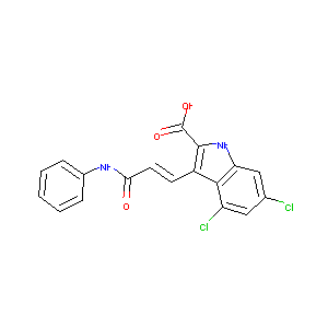 C1=CC=C(C=C1)NC(=O)C=CC2=C(NC3=CC(=CC(=C32)Cl)Cl)C(=O)O