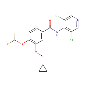 DAXAS; ROF; Roflumilast [USAN]; BY217; BYK20869; APTA-2217; BY-217; Roflumilast (JAN/USAN/INN); 3-(CYCLOPROPYLMETHOXY)-N-(3,5-DICHLOROPYRIDIN-4-YL)-4-(DIFLUOROMETHOXY)BENZAMIDE; 3-Cyclopropylmethoxy-N-(3,5-dichloropyridin-4-yl)-4-(difluoromethoxy)benzamide; 3-cyclopropylmethoxy-4-difluoromethoxy-N-(3,5-di-chloropyrid-4-yl)benzamide