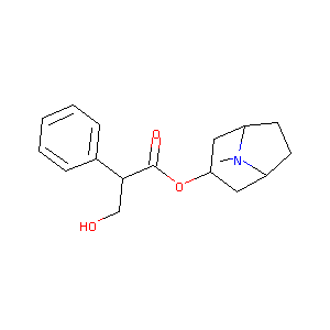 ATROPINE; Anaspaz; Atropair; Atropen; Atropin; Atropina; Atropinol; Atropt; Atrosulf; Belladenal; Buwecon; Cystospaz; Cytospaz; Daturine; Donnamar; Duboisine; Egacene; Egazil; Eyesules; Gastrosed; Hyocyamine; Hyospaz; Hyosyne; Levbid; Levsin; Levsinex; Minims; Neoquess; Nulev; OIN; Peptard; Symax; Urised; Atropin [German]; Atropina [Italian]; Atropine Care; Atropine [BAN]; HYOSCYAMINE HCl; Hyoscyamine [BAN]; Hyoscyamine sulfate; Isopto Atropine; Levsin SL; Levsinex SR; Minims Atropine; Scopolia extract; Symax Duotab; Symax SL; Symax SR; Tropine tropate; Troyl tropate; H 9002; Anaspaz (TN); Atropen (TN); Atropin-flexiolen; Atropine (USP); Bellergal-S; Buscopan (TN); Buwecon (TN); Cystospaz (TN); DL-Hyoscyamine; DL-Tropyl tropate; Dl-Hyoscyamine; Dl-Tropyltropate; Donnamar (TN); HyoMax (TN); Hyoscyamine (L); Hyoscyamine (USP); Hyospasmol (TN); I-Tropine; Isopto-atropine; L-Atropine; L-Hyopscyamine;L-Hyoscamine; L-Hyoscyamine; L-Hyoscyamine hydrobromide; L-Tropine tropate; Levbid (TN); Levsin (TN); NP-010662; Neo-Diophen; Neoquess (TN); NuLev (TN); Ocu-Tropine; Protamine & Atropine; Symax (TN);Tropic acid, ester with tropine; Tropine, tropate (ester); Atropine Sulfate S.O.P.; Tropic acid, 3-alpha-tropanyl ester; Atropine, 3(S)-endo-Isomer; DL-Tropanyl 2-hydroxy-1-phenylpropionate; R-(+)-Hyoscyamine; Tropine, (-)-tropate; Tropic acid, (-)-, ester with tropine; Tropine (+/-)-tropate; Tropine, (-)-tropate (ester); (+)-Atropine; (+)-HYOSCYAMINE; (+,-)-Tropyl tropate; (+-)-atropine; (+-)-hyoscyamine; (+/-)-Atropine; (+/-)-Hyoscyamine; (-)-Atropine; (-)-Hyoscyamine; (-)-Tropic Acid Ester with Tropine; (S)-(-)-Hyoscyamine; (S)-Atropine; 1-Hyoscyamine