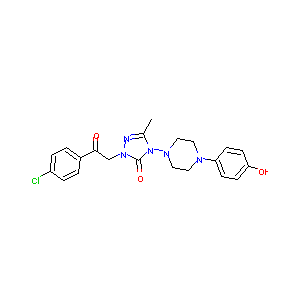 CC1=NN(C(=O)N1N2CCN(CC2)C3=CC=C(C=C3)O)CC(=O)C4=CC=C(C=<br />C4)Cl