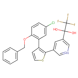InChI=1S/C24H17ClF3NO3S/c25-18-6-7-21(32-14-15-4-2-1-3-5-15)20(11-18)19-8-9-33-22(19)16-10-17(13-29-12-16)23(30,31)24(26,27)28/h1-13,30-31H,14H2
