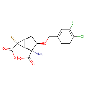 InChI=1S/C15H14Cl2FNO5/c16-8-2-1-6(3-9(8)17)5-24-10-4-7-11(14(7,18)12(20)21)15(10,19)13(22)23/h1-3,7,10-11H,4-5,19H2,(H,20,21)(H,22,23)/t7-,10-,11+,14-,15+/m1/s1
