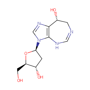 Coforin; Covidarabine; DCF; Deoxycoformycin; Nipent; Oncopent; Vidarbine; Vira A deaminase inhibitor; CL-67310465; CO-Vidarabine; Co-V; Nipent (TN); PD-81565; PD-ADI; Pentostatin (JAN/USAN/INN); (8R)-3-(2-deoxy-beta-D-erythro-pentofuranosyl)-3,6,7,8-tetrahydroimidazo[4,5-d][1,3]diazepin-8-ol; (8R)-3-[(2R,4S,5R)-4-hydroxy-5-(hydroxymethyl)oxolan-2-yl]-7,8-dihydro-4H-imidazo[4,5-d][1,3]diazepin-8-ol; (R)-3-(2-Deoxy-.beta.-D-erythro-pentofuranosyl)-3,6,7,8-tetrahydroimidazo(4,5-d)(1,3)diazepin-8-ol; 2'-DCF; 2'-Deoxycoformycin; 2'-Dexoycoformycin