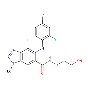 InChI=1S/C17H15BrClFN4O3/c1-24-8-21-16-13(24)7-10(17(26)23-27-5-4-25)15(14(16)20)22-12-3-2-9(18)6-11(12)19/h2-3,6-8,22,25H,4-5H2,1H3,(H,23,26)
