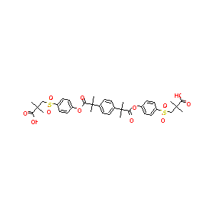 CC(C)(CS(=O)(=O)C1=CC=C(C=C1)OC(=O)C(C)(C)C2=CC=C(C=C2)<br />C(C)(C)C(=O)OC3=CC=C(C=C3)S(=O)(=O)CC(C)(C)C(=O)O)C(=O)<br />O