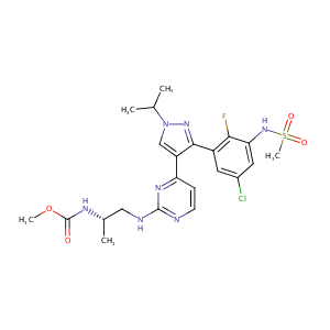 InChI=1S/C22H27ClFN7O4S/c1-12(2)31-11-16(17-6-7-25-21(28-17)26-10-13(3)27-22(32)35-4)20(29-31)15-8-14(23)9-18(19(15)24)30-36(5,33)34/h6-9,11-13,30H,10H2,1-5H3,(H,27,32)(H,25,26,28)/t13-/m0/s1
