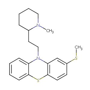 Aldazine; Mallorol; Malloryl; Meleril; Mellaril; Mellarit; Mellerets; Mellerette; Melleretten; Melleril; Melleryl; Metlaril; Novoridazine; Orsanil; Ridazine; Sonapax; Stalleril; Thioridazin; Thioridazinum; Thioxidazine; Tioridazin; Tioridazina; Thioridazine Hcl; Thioridazine Hcl Intensol; Thioridazine prolongatum; Thoridazine hydrochloride; Dl-Thioridazine; Mellaril (TN); Mellaril-S; Melleril (liquid); Novoridazine (TN); TP-21; Thioridazine, prolongatum; Thioridazinum [INN-Latin]; Thioril (TN); Tioridazina [INN-Spanish]; Mellaril-S (TN); Thioridazine (USP/INN); Thioridazine [USAN:INN:BAN]; Mellaril (*Hydrochloride*); (+-)-Thioridazine; 10-(2-(1-Methyl-2-piperidyl)ethyl)-2-(methylthio)phenothiazine; 10-[2-(1-methyl-2-piperidyl)ethyl]-2-methylsulfanyl-phenothiazine; 10-[2-(1-methylpiperidin-2-yl)ethyl]-2-(methylsulfanyl)-10H-phenothiazine; 10-[2-(1-methylpiperidin-2-yl)ethyl]-2-(methylthio)-10H-phenothiazine; 10-[2-(1-methylpiperidin-2-yl)ethyl]-2-methylsulfanylphenothiazine; 2-Methylmercapto-10-(2-(N-methyl-2-piperidyl)ethyl)phenothiazine; 3-Methylmercapto-N-(2'-(N-methyl-2-piperidyl)ethyl)phenothiazine