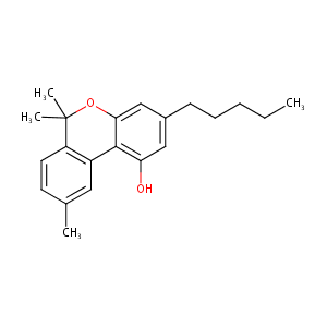 InChI=1S/C21H26O2/c1-5-6-7-8-15-12-18(22)20-16-11-14(2)9-10-17(16)21(3,4)23-19(20)13-15/h9-13,22H,5-8H2,1-4H3